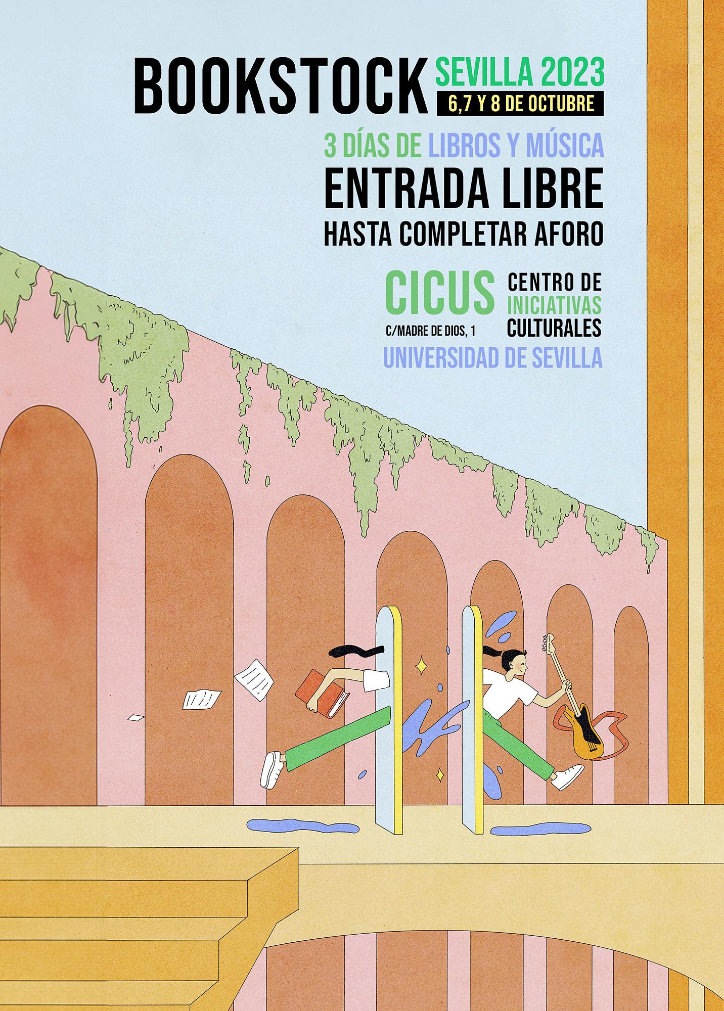 El festival Bookstock celebrará su sexta edición del 6 al 8 de octubre en el Centro de Iniciativas Culturales de la Universidad de Sevilla (CICUS). Tres jornadas dedicadas a la literatura y la música, con presentaciones, charlas, conciertos, talleres y una exposición, todas ellas actividades de acceso libre —mediante invitación a través de la plataforma Entradium— que reunirán a importantes nombres propios del panorama nacional como Juan Gómez Bárcena, Alana S. Portero, Juan Luis Arsuaga, Cristina Morales, Sabino Méndez, Gabi Martínez, Alba Carballal, Juan Manuel Gil, Juan Vilá, Eva Hache, Jesús Carrasco, Mariano Peyrou, Ana Chufa y Dogo, entre otros de los autores y artistas confirmados en una programación que se irá desvelando del todo en las próximas semanas. Además y como de costumbre, esta cita organizada por las revistas Jot Down y Mercurio, con el apoyo de la Universidad de Sevilla, incluirá la presencia de una treintena de editoriales independientes, que pondrán a disposición de los visitantes su amplio fondo de catálogo en sus estands. Otro factor que aportará calidad y difusión a esta edición, cuyo cartel es obra de la ilustradora Laura Rubio, será el hecho de hacerla coincidir, compartiendo ubicación y parte del programa, con el evento Ciencia Jot Down.