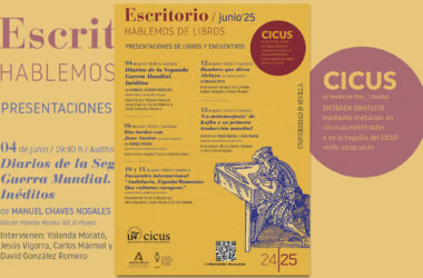 PRESENTACIONES DE LIBROS Y FIRMA DE AUTORES EN CICUS Fecha: 4, 6, 10, 11, 12 y 13 de junio de 2025 Lugar: CICUS (c/ Madre de Dios, 1) Novela, poesía, ensayo y encuentros literarios, también de carácter internacional, tendrán un gran protagonismo en la programación de la primera quincena de […]