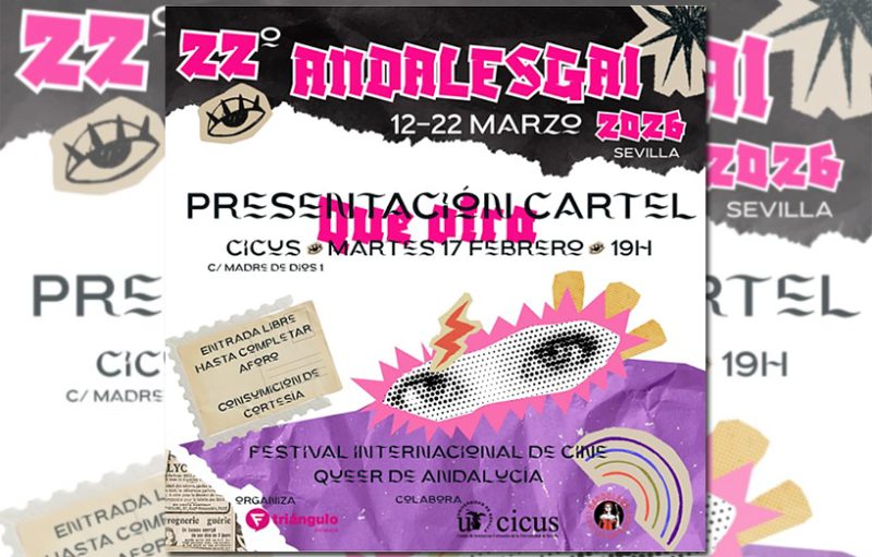 La Fundación Triángulo y el CICUS tienen el placer de invitarles a la presentación del Cartel de la 22ª edición del Festival Internacional de Cine Queer de Andalucía. Andalesgai, con sus protagonistas y el equipo de diseño.