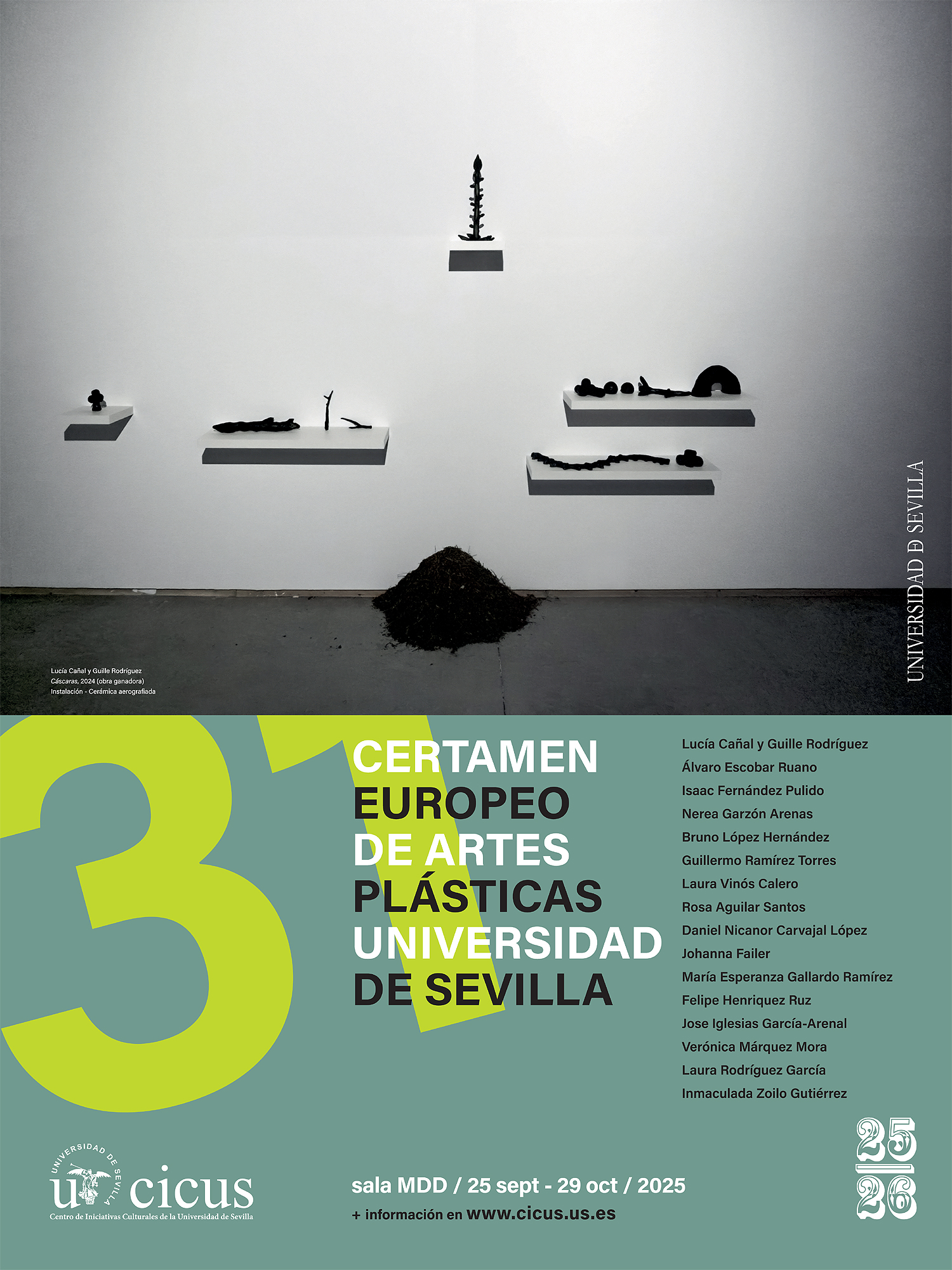 El Certamen Europeo de Artes Plásticas convocado por la Universidad de Sevilla, a través de su Centro de Iniciativas Culturales (CICUS), cumple su trigésimo primer aniversario. En esta larga trayectoria han pasado varias generaciones de artistas que forman en la actualidad la memoria y la historia del binomio arte y universidad. El objetivo principal de este certamen que lleva activo más de un cuarto de siglo ha sido potenciar nuestra política de apoyo y fomento a la creación artística, así como la difusión de las artes visuales contemporáneas. Jóvenes universitarios o egresados recientes encuentran, año a año, en nuestras convocatorias, un espacio para pensar, para crear y, finalmente, para mostrarnos a todos el resultado de su proceso creativo. Se persigue con esta edición visualizar la obra de una nueva generación emergente.